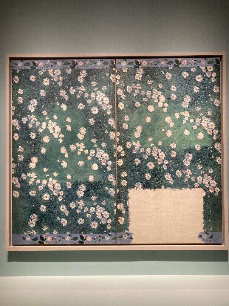 作者が制作中に亡くなられたということで、制作途中のままの状態だそうです。そうは言っても、絵を描く工程としては違和感があるような感じですが、いきなりスパーンとぬけた空白がただの美しい絵で終わらせていなくて、気になった作品です。