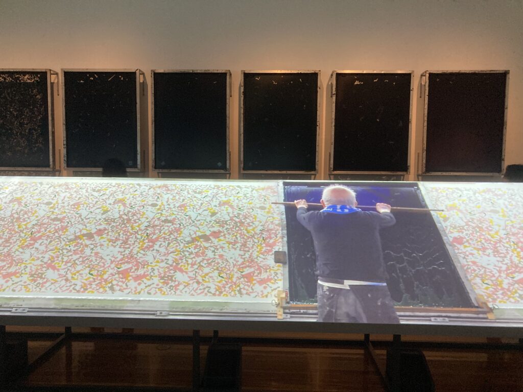 人を避けてささっと撮影しているので、写真がうまくないですが、この職人さんの動きを大画面で映した展示は圧巻でした。
